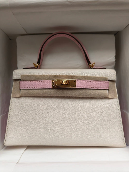 Hermes Mini Kelly 20cm HSS In Chèvre mysore Nata with Rose Sakura