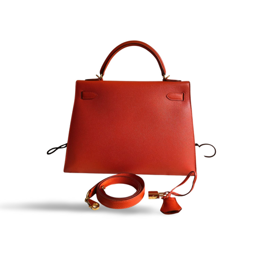 Hermes Orange Kelly 32 Sellier Bag in Epsom Leather with Gold Hardware