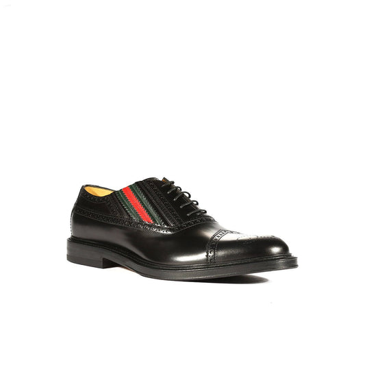 Gucci 547592 0GQ30 1078 Men's Shoes Black Calf-Skin Leather Cap-Toe Oxfords (GGM1719)