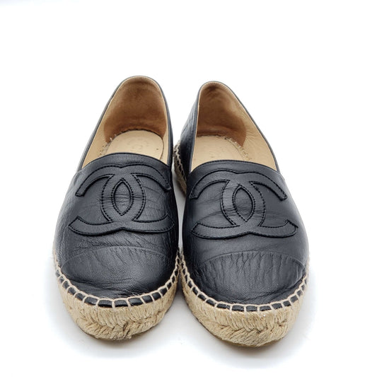 Chanel CC Lambskin Black Espadrille Shoes