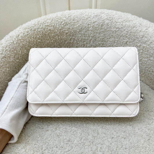 Chanel Classic Wallet on Chain WOC in White Caviar and SHW (Model: AP0250)