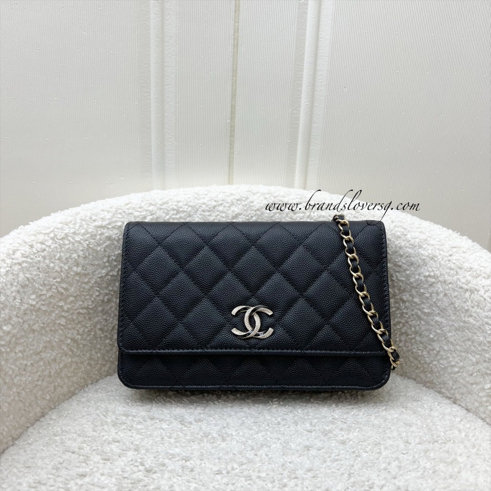 Chanel 23S Wallet on Chain WOC in Black Caviar, Diamantes Studded Logo and SHW (Model: AP3336)