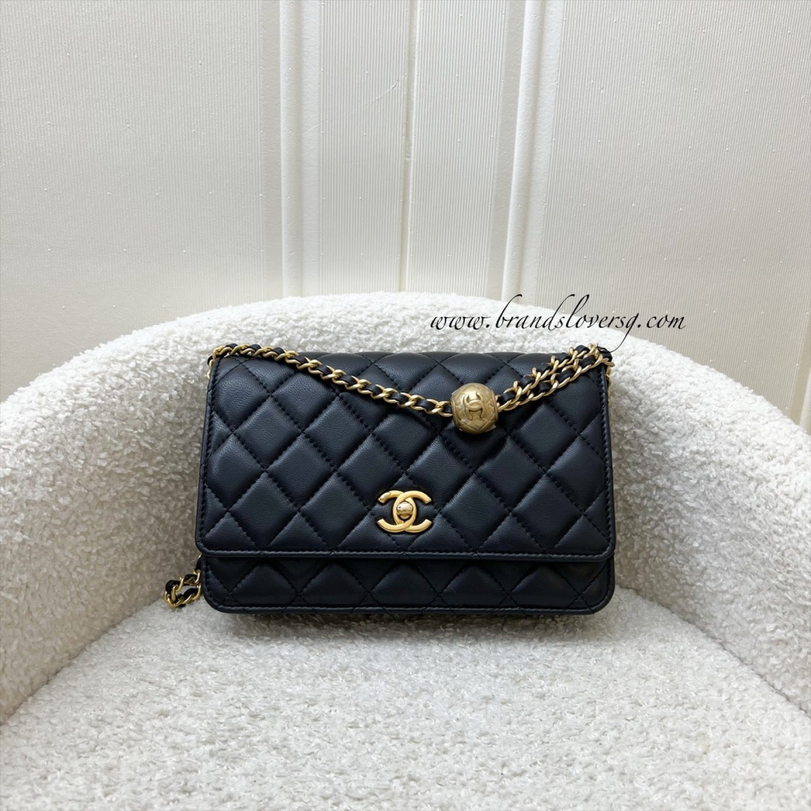 Chanel Pearl Crush Wallet on Chain WOC in Black Lambskin and AGHW (Model: AP1450)
